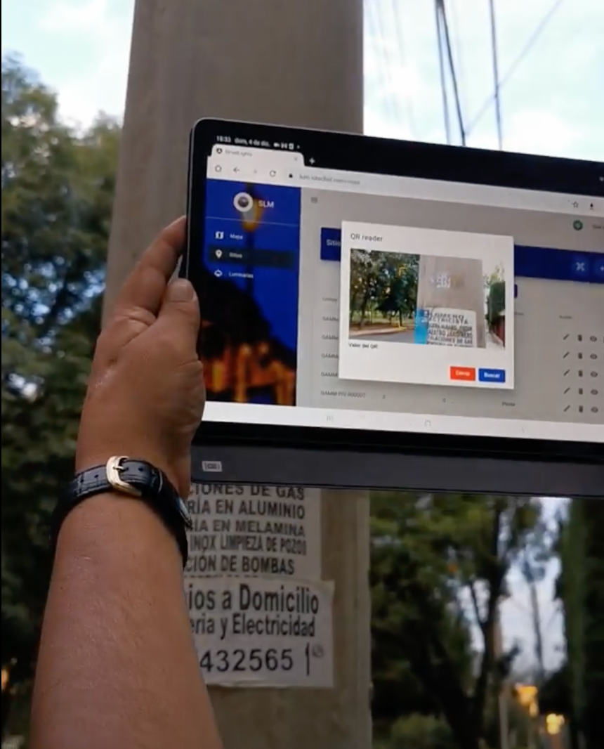 Scanning the QR code with a phone sends the coordinates automatically to the cloud. This facilitates easy tracking and management of street lighting poles and their associated lamps. This automated process streamlines data collection and maintenance scheduling.